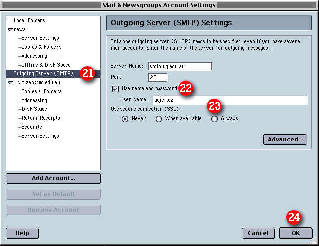 | 21)Highlight 'Outgoing Server (SMTP)' |