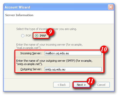 | 9)Ensure 'IMAP' is selected. |