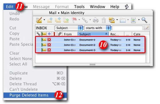 12)Select 'Purge Deleted Items' - all mail in a status of 'Deleted' will be removed from your Inbox